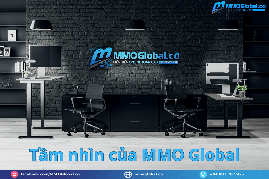 MMO Global định vị mình là hệ sinh thái hỗ trợ người Việt phát triển năng lực số, vận hành mô hình kiếm tiền online (Make Money Online) một cách bài bản, minh bạch và bền vững. Tầm nhìn của MMO Global không chỉ dừng lại ở việc giúp người Việt tìm kiếm thu nhập, mà là tạo ra một thế hệ công dân toàn cầu số, đủ năng lực chinh phục thị trường quốc tế bằng chính tri thức Việt.