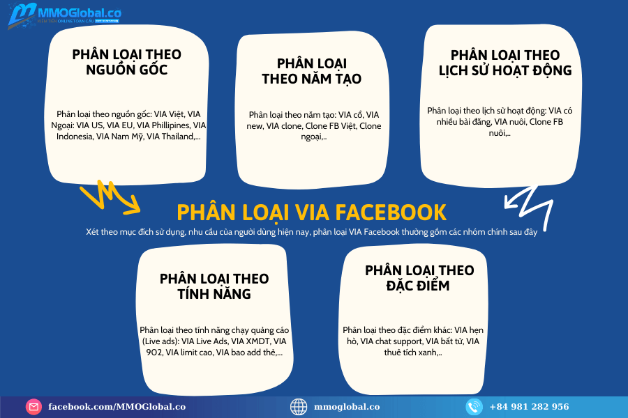 Để hiểu rõ hơn VIA Facebook là gì, bạn cần nắm được các loại VIA Facebook phổ biến hiện nay. Dưới đây là những phân loại được sử dụng nhiều nhất.